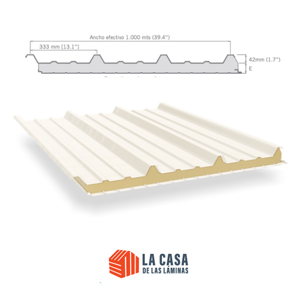 Está diseñado para satisfacer las necesidades de cubiertas de todo tipo de construcción, fabricado con lámina metálica calibre 26 en cara interior y calibre 26 o 28 en cara exterior con núcleo de espuma de poliuretano.