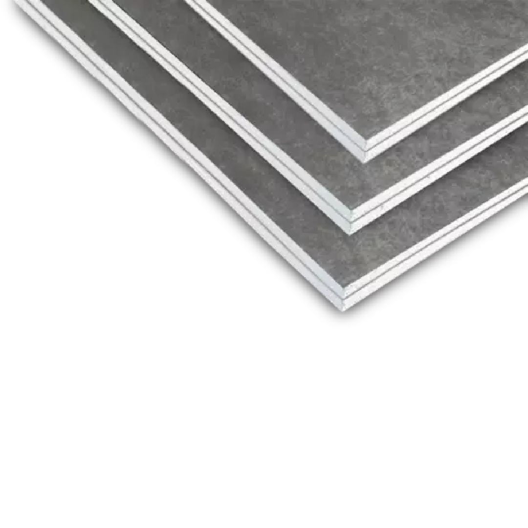 Con un núcleo incombustible, es especial contra la absorción de agua. Recubierto en ambas caras por fibra de vidrio resistente a los hongos.